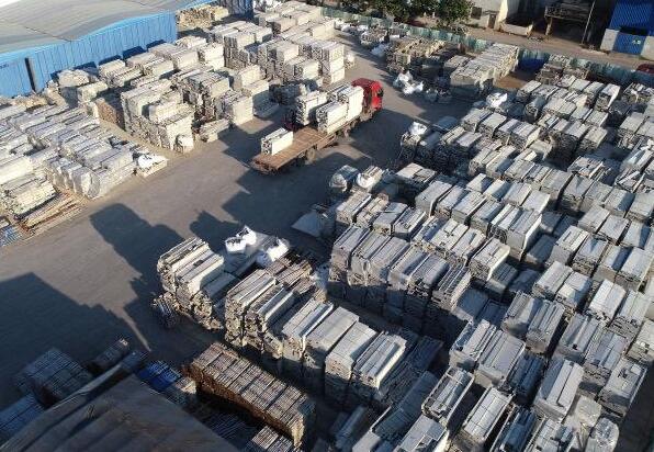 雙峰縣高新區(qū),工人在操作叉車(chē)卸運(yùn)建筑用鋁模板配件。乃繼輝 攝