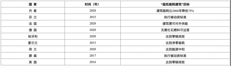 部分歐洲國(guó)家“超低能耗建筑”發(fā)展目標(biāo)